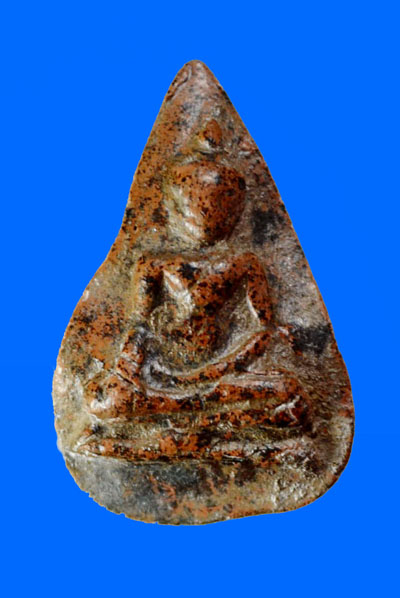 สถิตย์อยู่บนพื้นฐานดินเผารูปนางกลีบบัว เนื้อละเอียดนุ่ม มีว่านดอกมะขามและคราบรารักจับแน่น