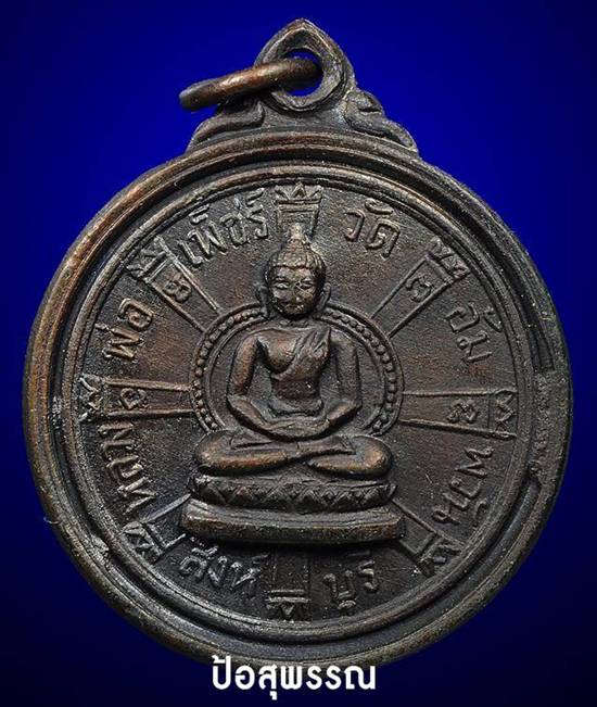 เหรียญหลวงพ่อเพ็ชร์ หลงพ่อจรัญ วัดอัมพวัน สิงห์บุรี เหรียญรุ่นแรก สร้างปี 2511 ด้านหน้าจะเป็นหลวงพ่อเพ็ชร์(พระคู่บารมีหลวงพ่อจรัญ) ด้านหลังจะเป็นรูปหลวงพ่อจรัญ ที่พบเห็นส่วนใหญ่จะเป็นเนื้อทองแดงรมดำ แต่ไม่รมดำก็มีจะหายากพบน้อยมากๆ จะมี 3 แบบ 1. พิมพ์สมบูรณ์ทั้งหน้า และหลัง 2. พิมพ์หน้าเขยื้อน ด้านหลังสมบูรณ์ 3. พิมพ์ด้านหน้าสมบูรณ์ ด้านหลังเขยื้อน(คางสองชั้น หรือคางเคลา) สร้างโดยอดีตหัวหน้าช่างประจำวัดอัมพวัน แต่ปัจจุบันเป็นมรรคนายกประจำวัดอัมพวันครับ สร้างเมื่อปี๒๕๑๑ แล้วได้นำไปให้พระอาจารย์ในสมัยนั้นปลุกเสกเกือบทั่วประเทศไทย เหรียญนี้สวยสภาพแชมป์ จมูกโด่งทั้งด้านหน้าและด้านหลัง ผิวสีรุ้งขึ้นปรอn สภาพแบบนี้ปัจจุบันพบน้อยมากครับ ถือเป็นเหรียญหลักอีกรุ่นหนึ่งที่บรรดาหมู่ลูกศิษย์เช่าและเก็บ หาสะสมกันอย่างมากครับ |