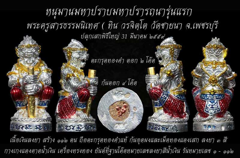 (สถานะ โชว์สวย ๆ) ข้อมูลจาก (รุ่นใหญ่ สายตรง) คุณ Bundit Kengthong ได้ให้ทัศนะเกี่ยวกับหนุมานรุ่นนี้ว่า "โดยส่วนตัวแล้วผมว่าสุดๆนะครับ อย่างแรกคือเป็นหนุมานวโลหะ รุ่นแรก ของท่านพระอาจารย์ทิน วรจิตฺโต วัดชายนา (เพชรบุรี) ปลุกเสกโดยท่านอาจารย์ทิน และพระเกจิอาจารย์ที่เป็นสายตรงวิชาของลพ.ดิ่งวัดบางวัว คือ ลพ.อนันต์ วัดบางพลีน้อย และพระเกจิสายนครปฐมและลุ่มน้ำแม่กลอง ซึ่งในแต่ละท่านแต่ละองค์ จะมีความเชี่ยวชาญเรื่องการเสกหนุมานอยู่แล้ว เช่นลพ.อวยพร วัดดอนยายหอม พระอาจารย์ใจ วัดพระยาญาติ ลพ.อิฏฐ์ วัดจุฬามณี พระมหาสุรศักดิ์ วัดประดู่ ลพ.พร ปภากโร วัดบางแก้ว ซึ่งแต่ละองค์ก็ได้รับการถ่ายทอดเรื่องการเสกหนุมานจากเกจิยุคเก่าเช่นวิชามหาปราบของหลวงพ่อคงวัดบางกระพร้อม *ผมจึงบอกได้ว่ารุ่นนี้สุดๆจริงๆ* |