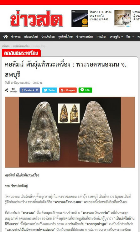 พระรอดกรุหนองมน เนื้อตะกั่ว สนิมแดงองค์นี้ สะสมบูชาเก็บเอาไว้ จนมีสมาชิกท่านนึง ปิดประมูลไปแล้ว แอบคิดถึง เมื่อพบเจอกัน ในคอลัมน์พระเครื่อง ของ นสภ.ข่าวสด